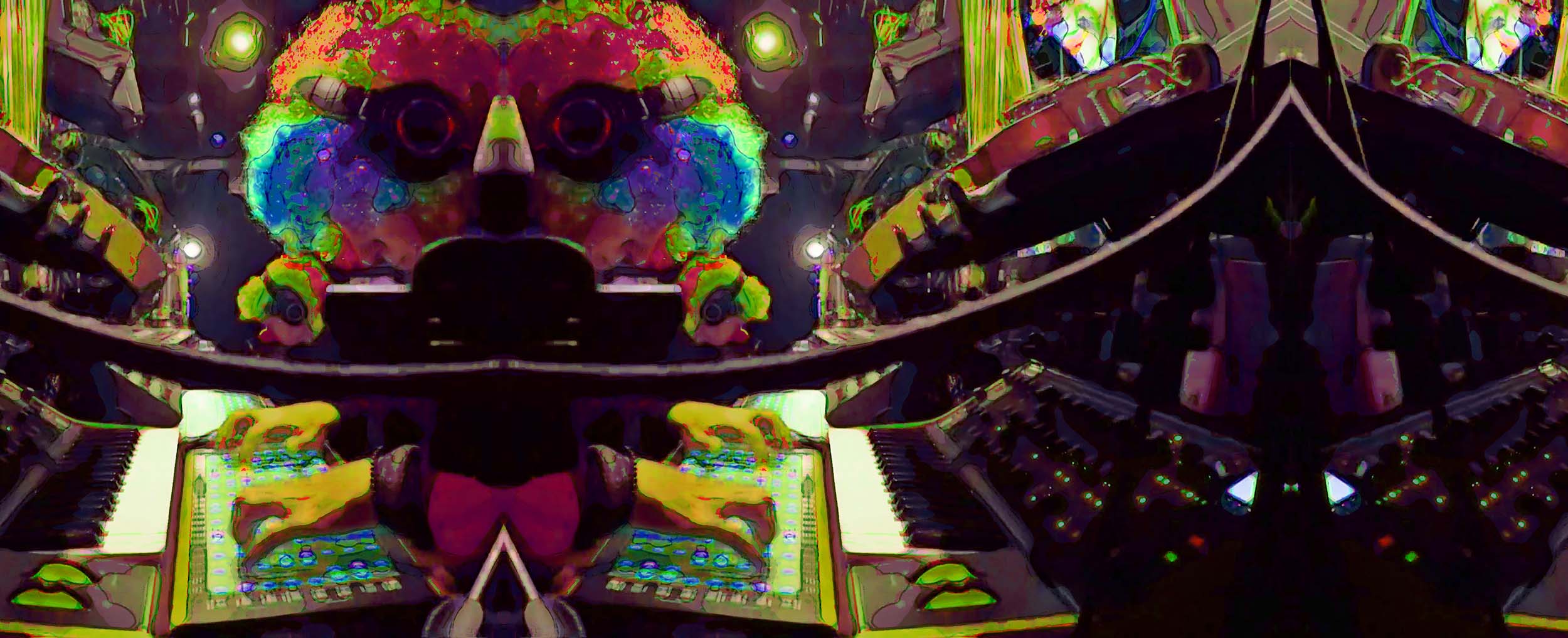 Jared Seabrook – drums, slide whistle, clown & taxi horns, gongs, plate gong, moog subsequent, novation peak, Linnstrument controllers