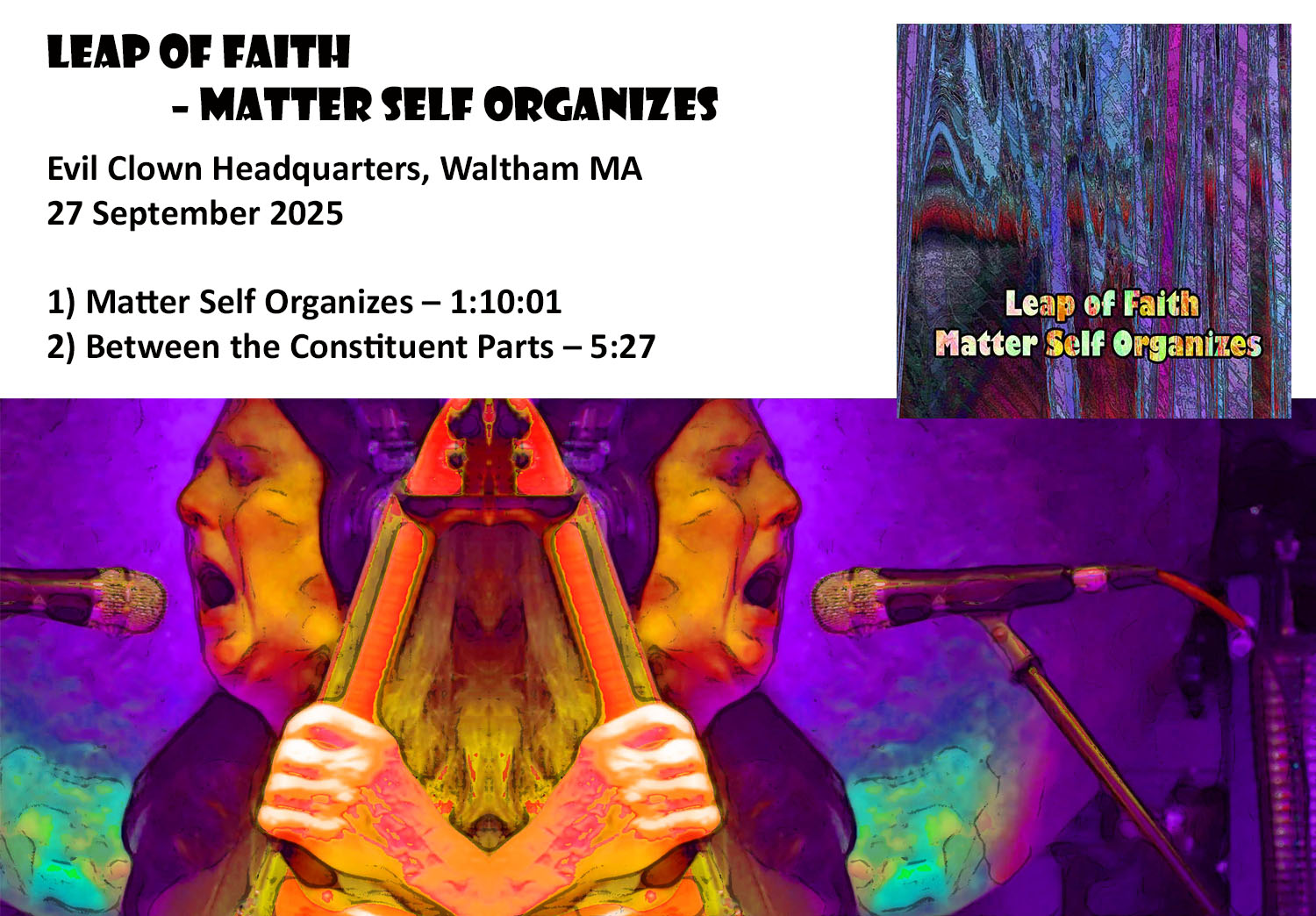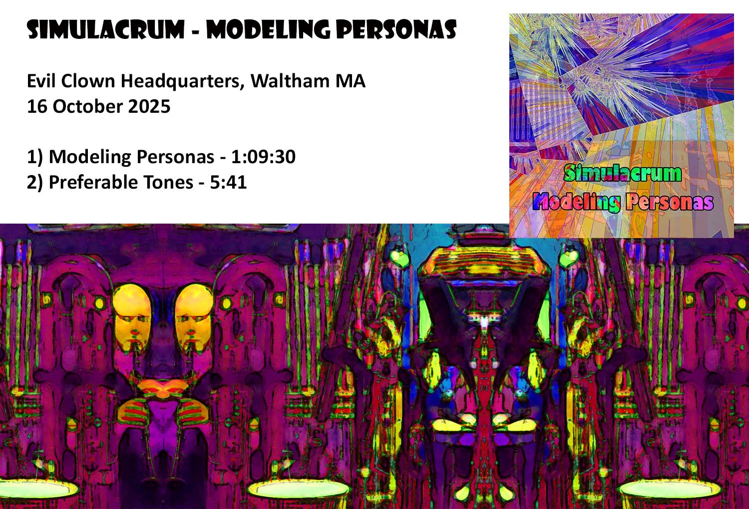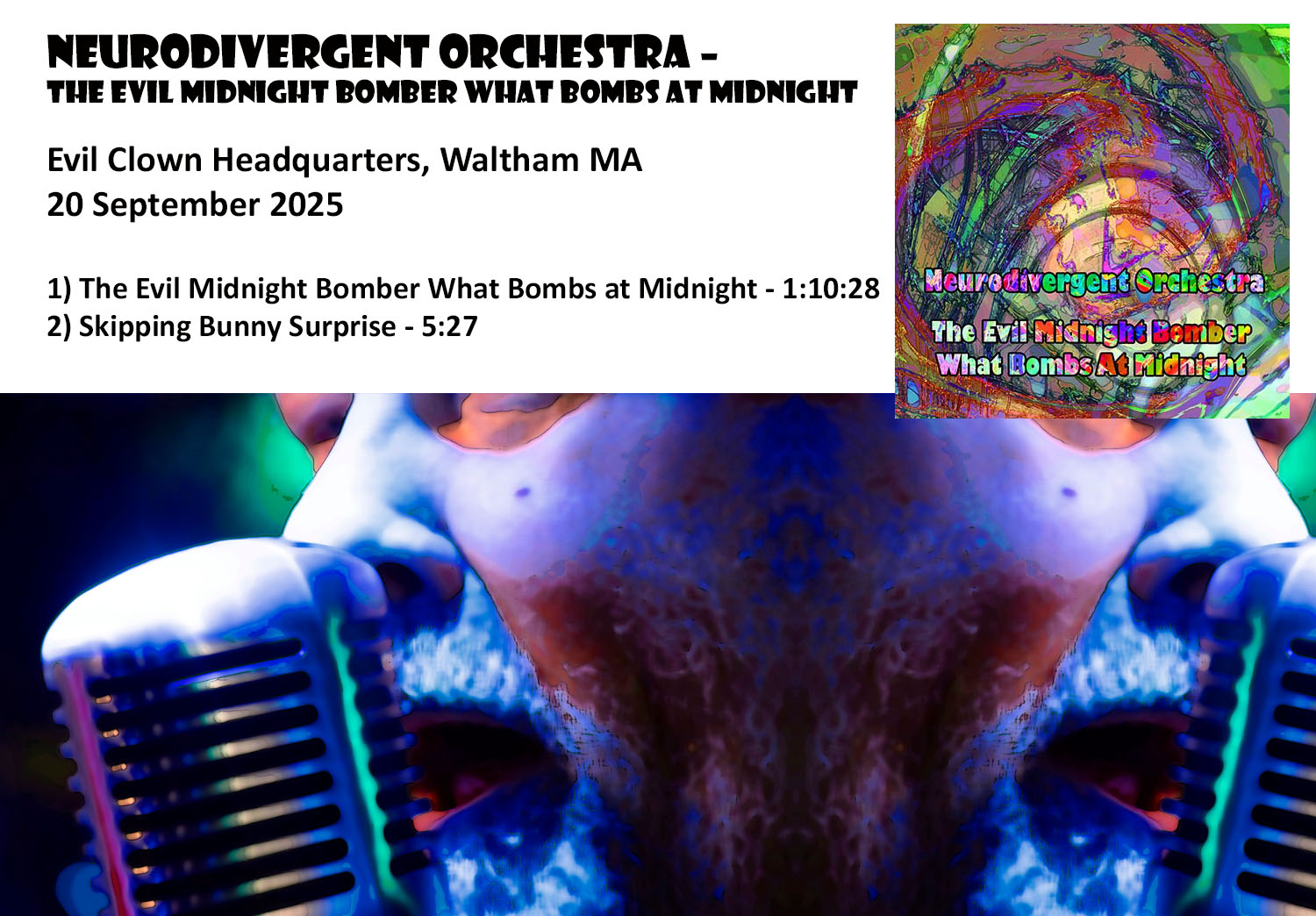 2025 is the Year in Progress at Evil Clown Headquarters. As the year goes on each new performance will have a brief summary with a few images below which link out to the Evil Clown Album Page, Bandcamp Page for the album, YouTube Videos, Musician Bios, etc. Each new Album is added to the top of the list in reverse-chronological order.