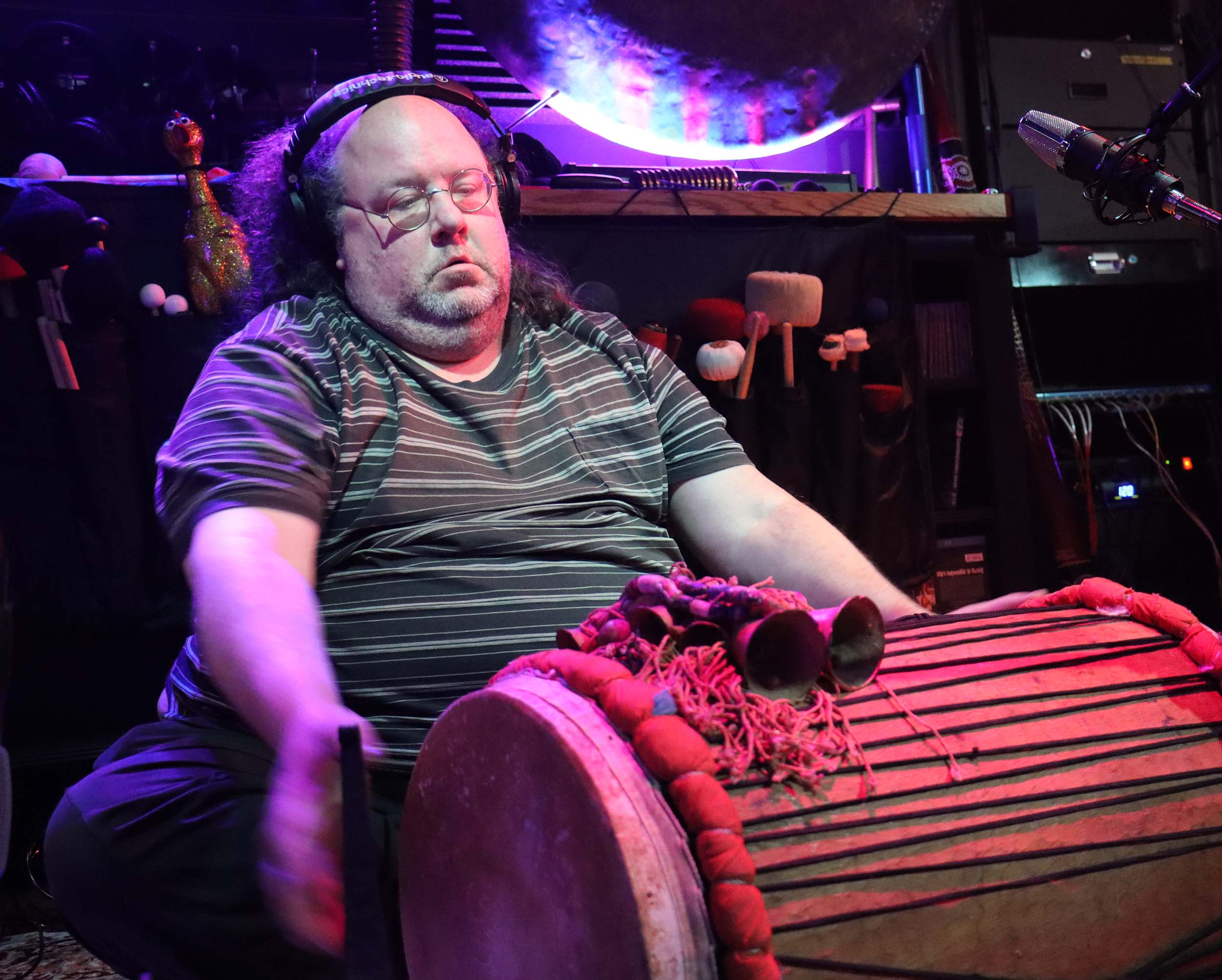 Michael Knoblach – African dunun, gankoqui, African bells, cow bells, sleigh bells, pie pans, temple blocks, railroad sign, claves, chalises, khartals, tiny remo drum, Halloween and party noisemakers, rolling pin, shakers, scrapers, sheep shears, egg beaters, horse shoes with railroad spike, train whistles, jug, ocarina, cymbals, cooking whisks, sandpaper blocks, Meinl galaxys, Whac-A-Mole game