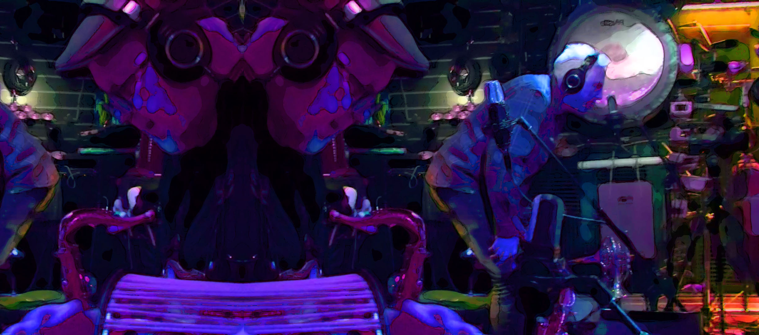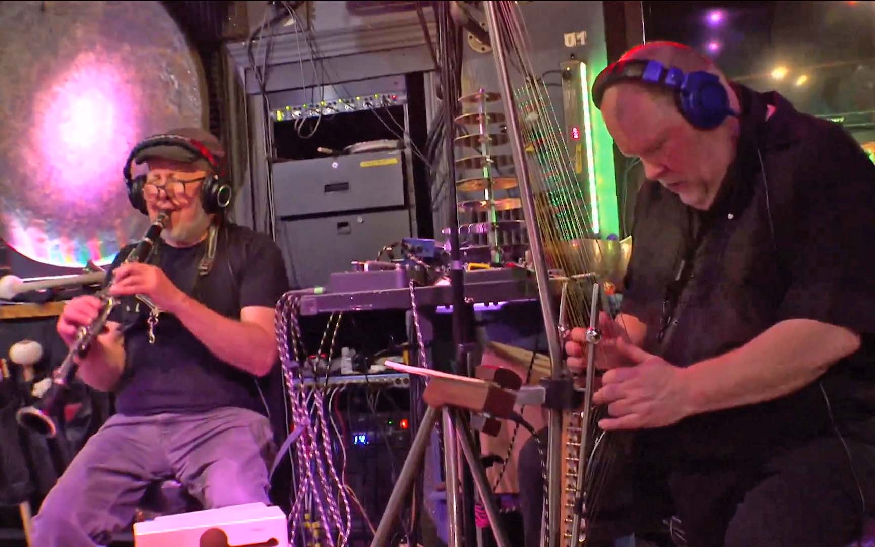 PEK – clarinet, basset horn, albert bass, contralto & contrabass clarinets, alto & tenor saxophones, shenai, piccolo oboe, English horn, contrabassoon, medieval horn, dudek, bass flute, Christmas flute, game calls, melodica, brontosaurus & tank bells, 17 string bass, [d]ronin, Godzilla harp, gravichord, moog subsequent, novation peak, Linnstrument controllers, ms-20, syntrx, soma pipe, drone boxes, glockenspiel, crotales, gongs, plate gong, wood & temple blocks, log drums, cow bells, sleigh bells, spring and chime rod boxes, xylophone, balafon, Englephone, danmo, triangle chimes, Tibetan bowls, bells & chimes, almglocken, orchestral chimes, castanets & anvils