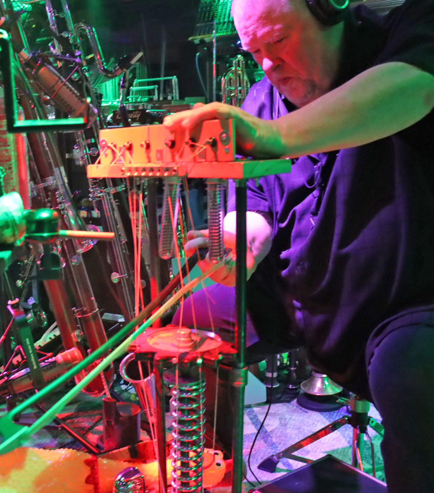 PEK – clarinet, basset horn, contralto & contrabass clarinets, alto & tenor saxophones, shenai, piccolo oboe, medieval horn, sheng, melodica, accordion, alto flute, ocarinas, brontosaurus & tank bells, spring & chime rod boxes, 17 string bass, [d]ronin, Godzilla harp, lfo percolator, moog subsequent, novation peak, Linnstrument controllers, ms-20, prophet, gongs, plate gong, wood & temple blocks, log drums, Englephone, danmo, triangle chimes, Tibetan bells & chimes, almglocken, array mbira, orchestral chimes, array mbira, kalimba, triangle chimes, cow bells